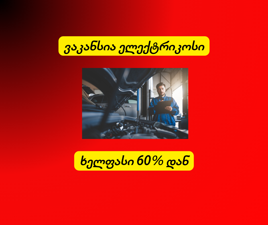📍 შაკო მოტორსი – პირველი 24/7 ავტოსერვისი საქართველოში, აცხადებს ვაკანსიას ავტოელექტრიკოსის პოზიციაზე.